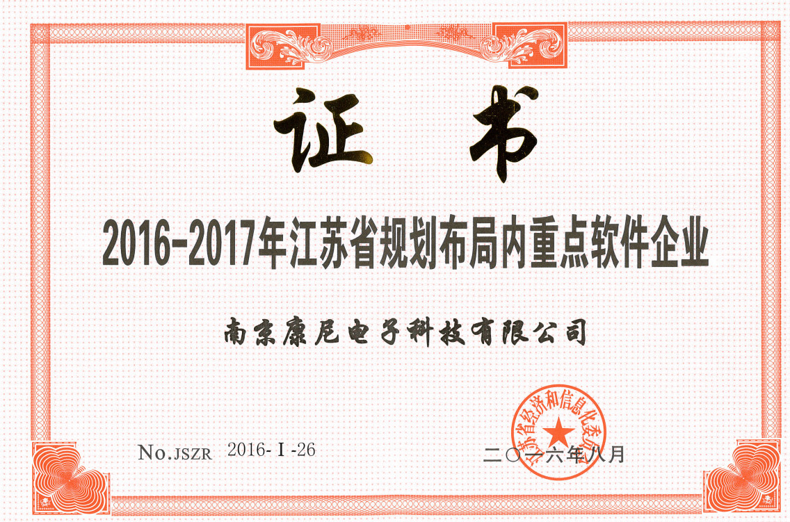 康尼電子入圍2016--2017年省規劃布局內重點軟件企業