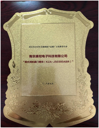 南京康尼電子科技有限公司產品剪式閘機扇門模塊(KZA-JS0300ABR),經過各級專家的考察審批,被南京市政府列入2018年首批創新產品推廣示范推薦目錄。